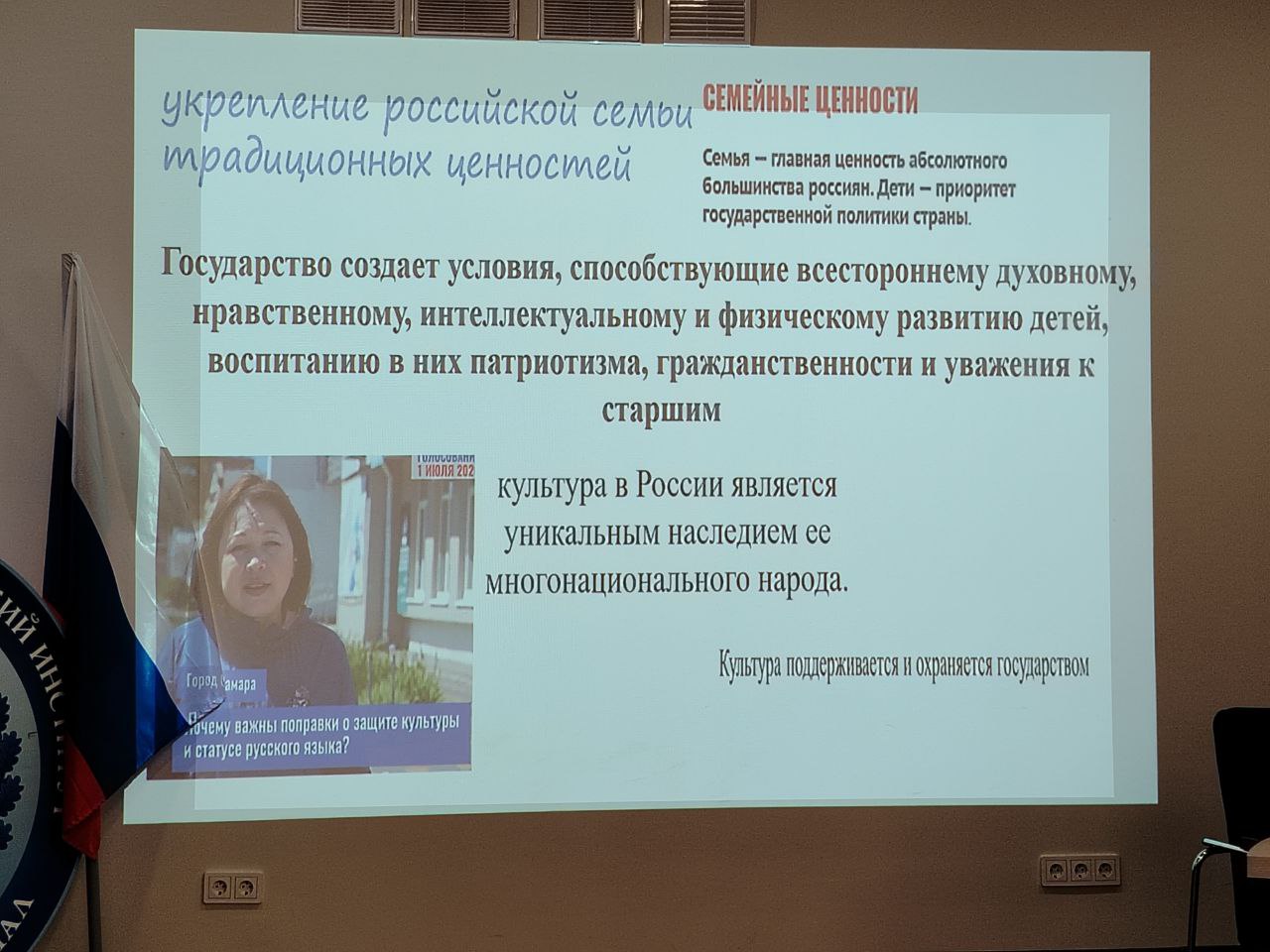 На встрече обучающиеся разбирали вопросы: о современных подходах к трактовке Конституции РФ; обсуждали роль основного закона государства в его политической системе; узнали, как конституционные принципы отражаются в жизни молодежи; о соотношении федерального и регионального законодательства; об избирательных правах граждан.