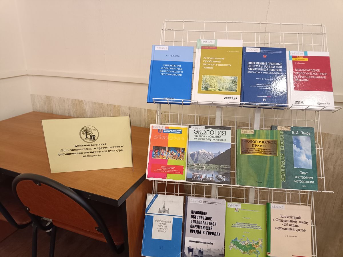 В работе книжной выставки приняли участие директор ЦУНБ – Можжухин В.В. и сотрудники библиотеки. Была подготовлена книжная выставка на тему: «Роль экологического правосознания в формировании экологической культуры населения». Молодой сотрудник библиотеки рассказал о фондах библиотеки по экологическому праву и рекомендовал ряд книг, которые формируют становление правовой экологической культуры населения.