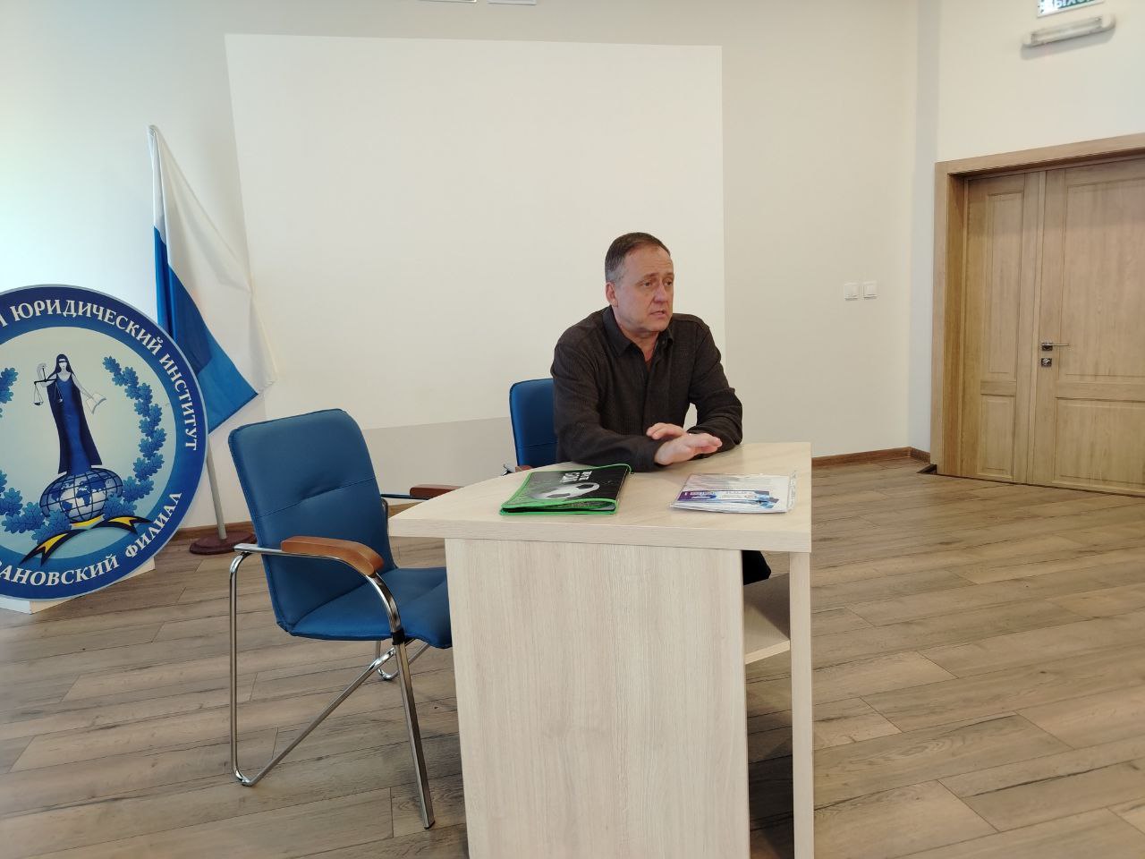 23 декабря 2025 года в Ивановском филиале МЮИ состоялась встреча студентов с представителем профессионального образовательного учреждения Ивановского регионального центра военно- патриотического воспитания и подготовки граждан к военной службе Общероссийской общественно- государственной организации ДОСААФ России Романовым Андреем Леонидовичем, заместителем руководителя по учебной части. Она была организована по инициативе руководства ДОСААФ, с которым наш вуз связывают долгие годы плодотворного и разнопланового сотрудничества.