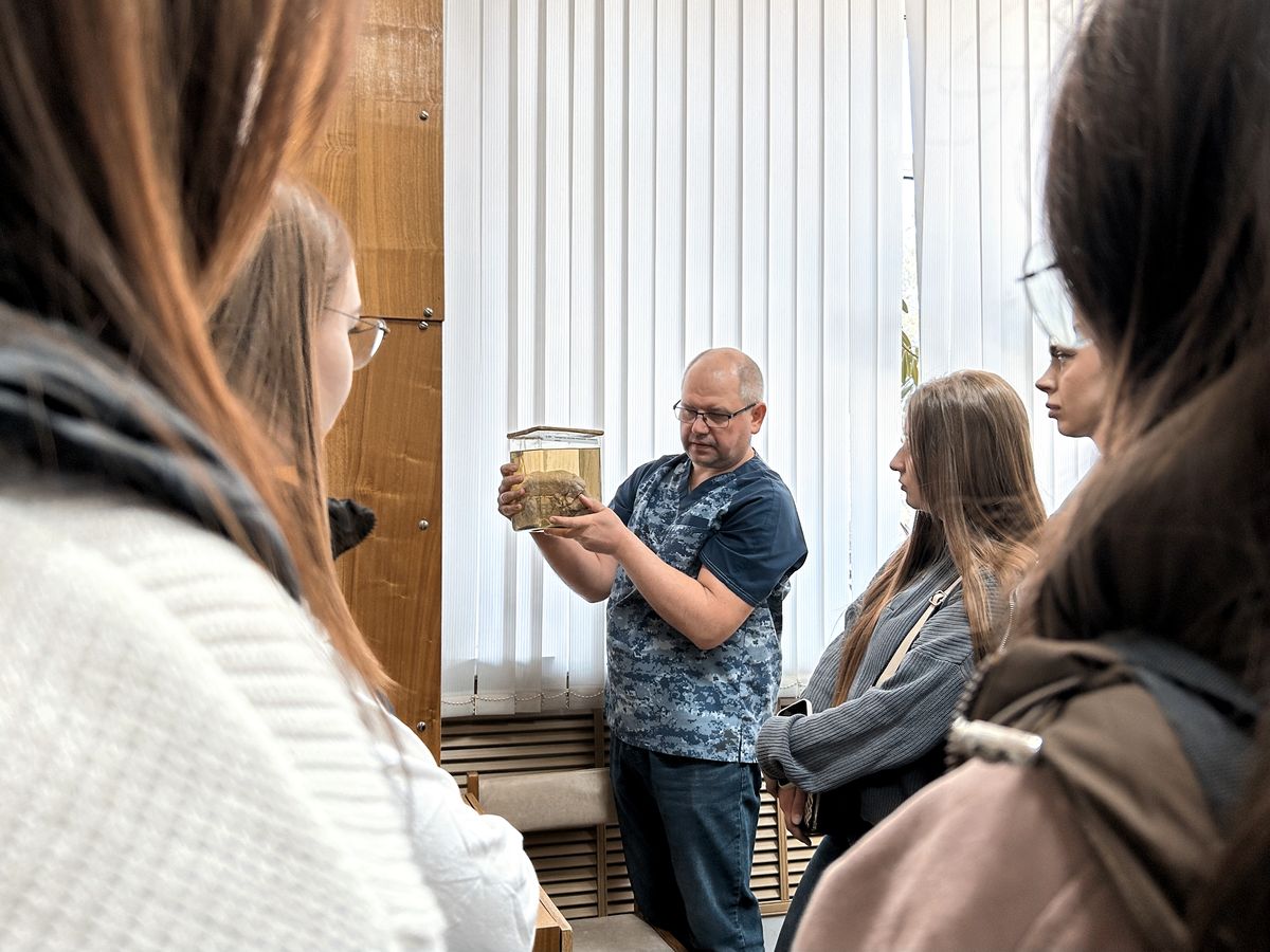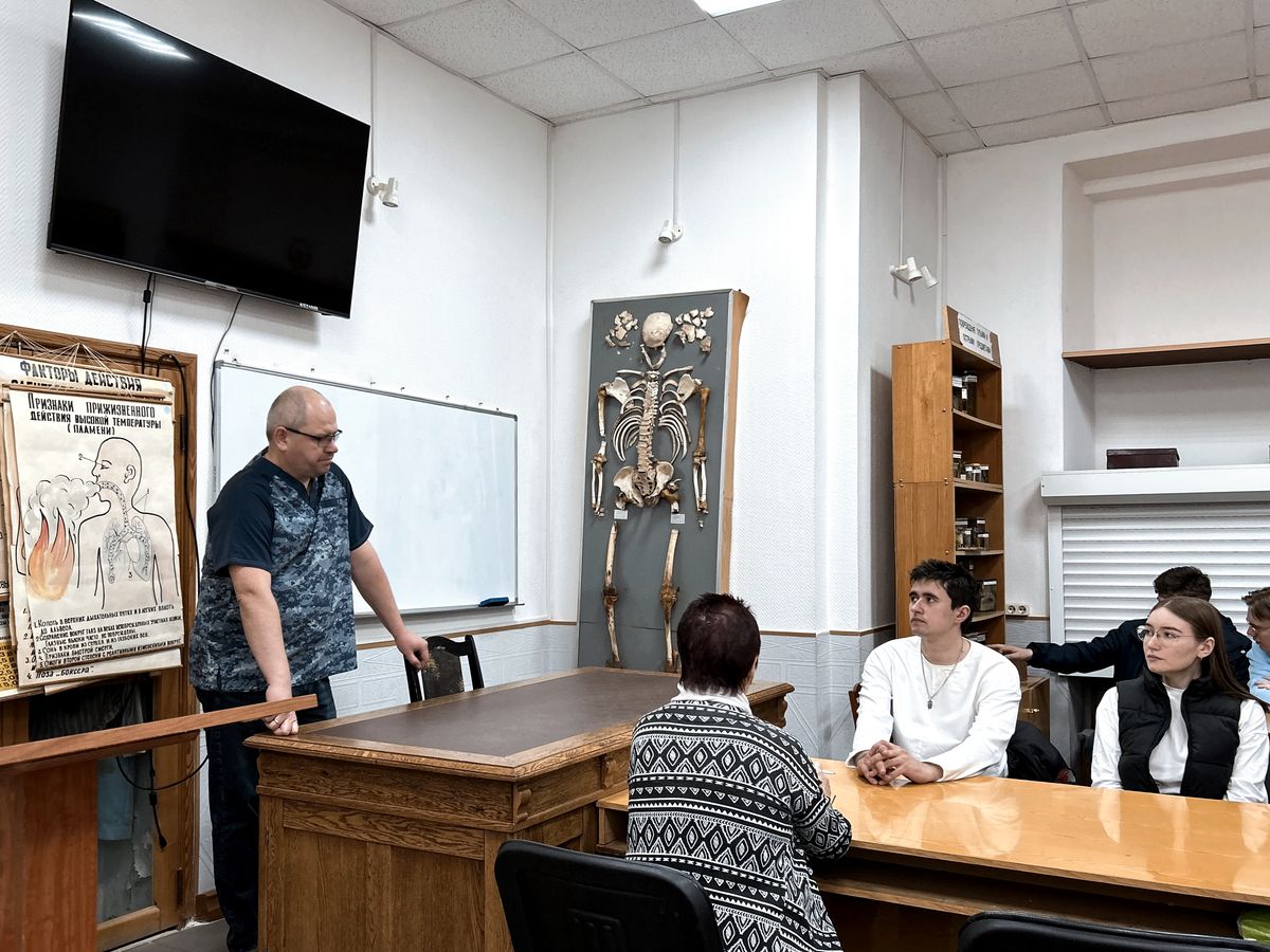 Врач - судебно-медицинский эксперт Д.В.Карасев рассказал об основах судебной медицины и ее значении в практической деятельности юристов; о существующих в науке категориях и видах смерти. В музее Бюро судебно-медицинских экспертиз на имеющихся там экспонатах он наглядно показал признаки наступления смерти от различных факторов: повреждений тупыми предметами, огнестрельных ранений, колото-резаных ран, асфиксии, действия технического и атмосферного электричества и др. При этом было акцентировано внимание на вопросах назначения судебно-медицинской экспертизы в ходе расследования преступлений против личности и взаимодействия следователя с судебно-медицинским экспертом.