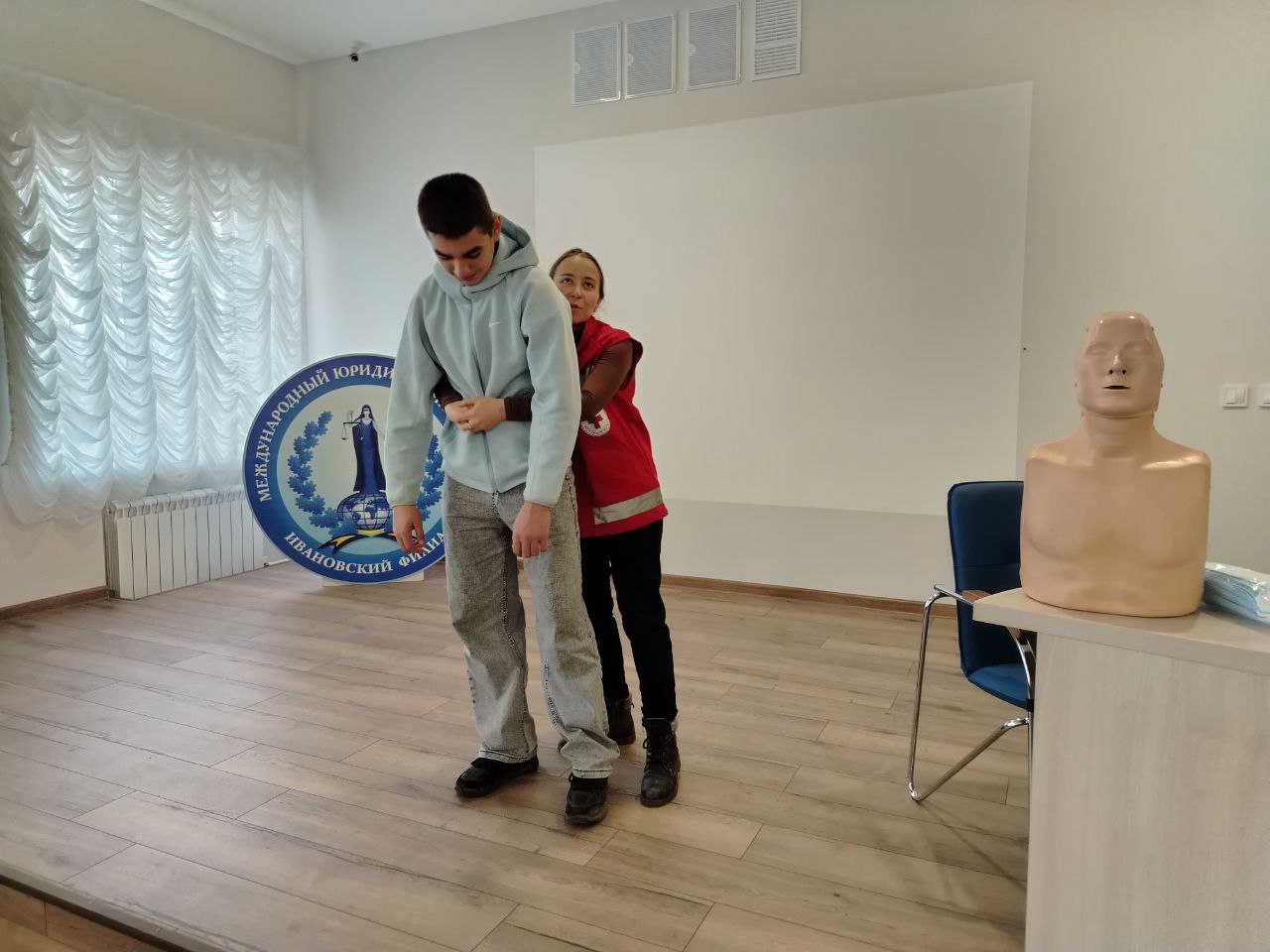 28 ноября 2025 года в Ивановском филиале МЮИ для студентов был проведен мастер-класс, по оказанию первой медицинской помощи в различных жизненных ситуациях, студенткой 6 курса Ивановского Медицинского университета Малчевой Анной, волонтером «Российского Красного Креста».