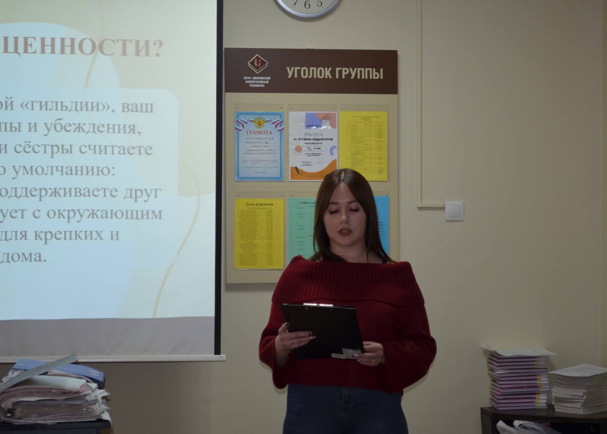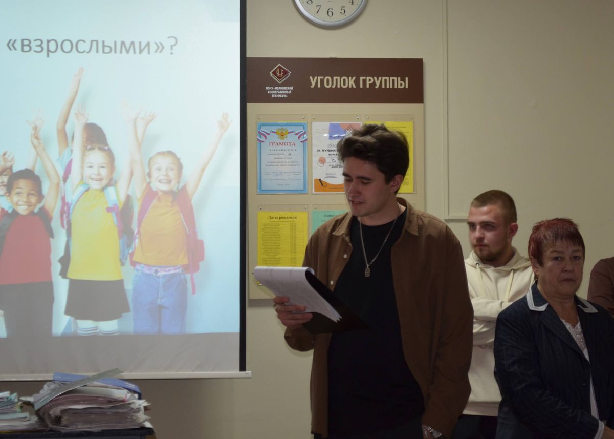 6 ноября 2025 года в рамках реализации проекта «Волонтёры семьи» участники волонтёрского движения, созданного на базе юридической клиники Ивановского филиала Международного юридического института под эгидой Правительства Ивановской области и Комитета Ивановской области по молодежной политике, посетили Ивановский кооперативный техникум, где встретились с обучающимися 1-2 курсов по специальности юриспруденция.