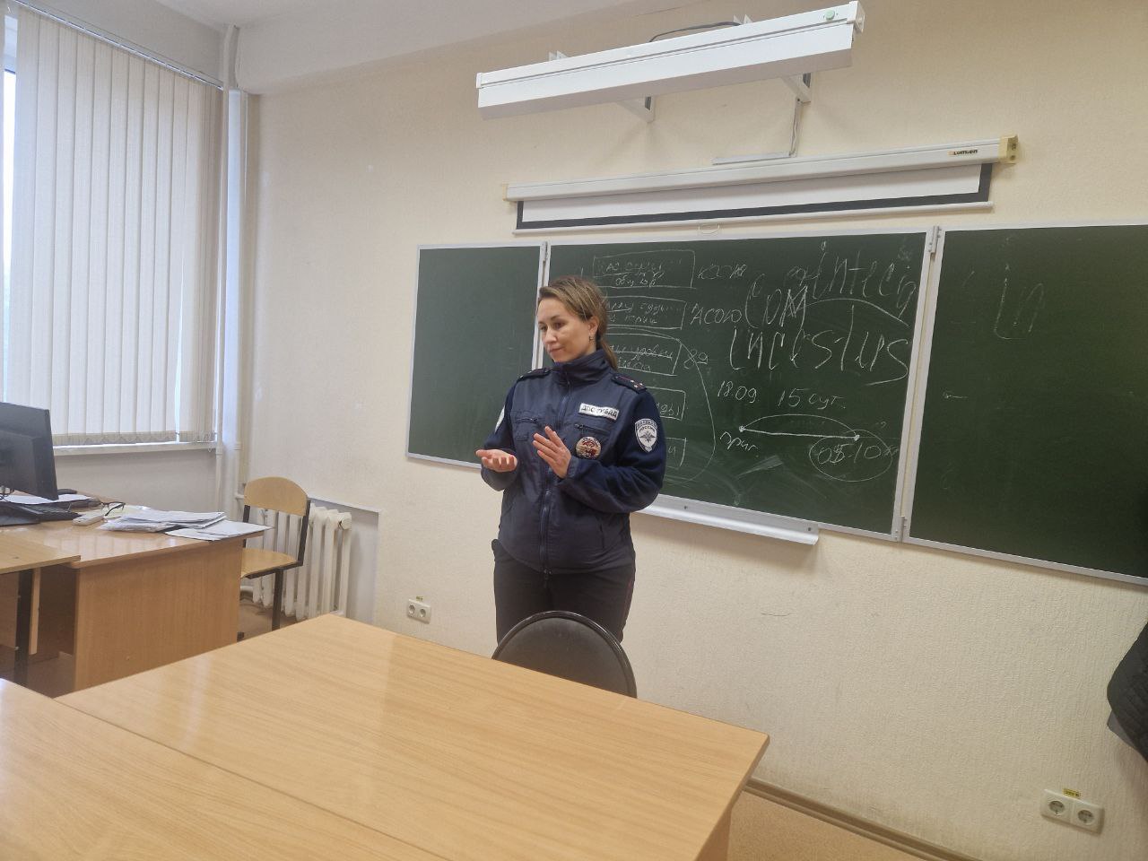 Анастасия Геннадьевна напомнила студентам о важности соблюдения Правил дорожного движения, особенно среди молодых водителей, обсуждалась административная ответственность за нарушение ПДД, а также управление транспортным средством в состоянии алкогольного или наркотического опьянения.